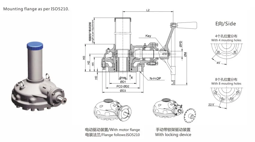 The BA series multi turn bevel gearbox from Zhejiang Jimai Auto-tech Co., Ltd. is specifically engineered for multi-turn rotation valves, including gate valves and globe valves. The body material is nodular cast iron, in accordance with the ANSI 60-45-12 standard. Nodular cast iron exhibits superior resilience, plasticity, and strength when contrasted with conventional grey cast iron.