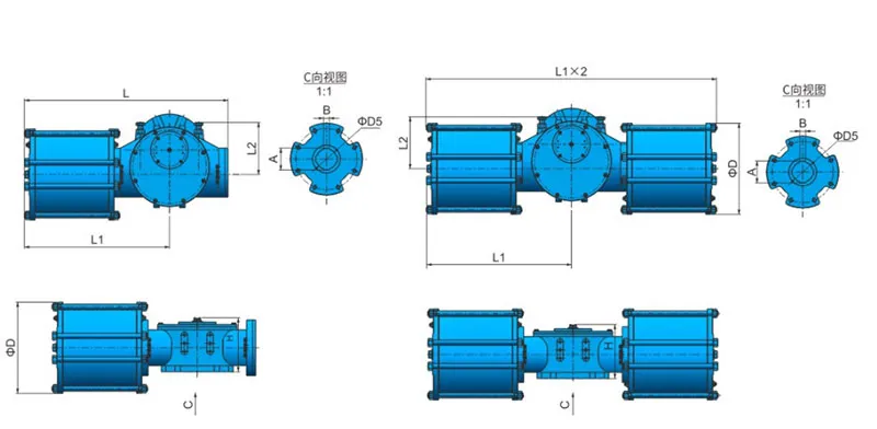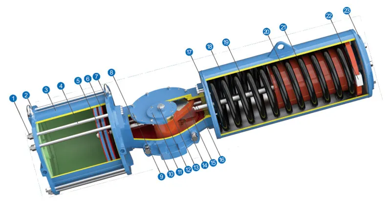 The HXY series scotch yoke pneumatic actuator from Zhejiang Jimai Auto-Tech Co., Ltd. is engineered for high output torque applications in ball and butterfly valves. The maximum output torque for the double acting type can attain 107,847 NM, while the spring return variant can achieve 30,000 NM at 4 bar air pressure, accommodating nearly all operational conditions. The HXY series high torque rotary actuator features a modular construction, allowing each unit to utilize different cylinders and springs to accommodate diverse torque requirements.