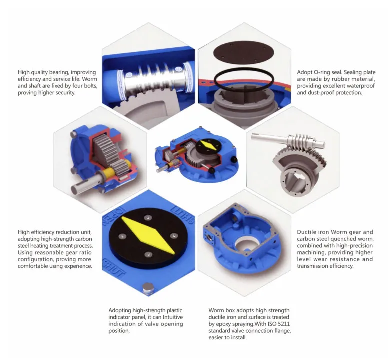 The valve gearbox body and worm gear are processed independently by JIMAI. The valve gearbox's overall quality is guaranteed by JIMAI's processing of all primary components. The tight connection guarantees a seamless rotation without any jamming. The maintenance cost will be significantly reduced by utilising JIMAI products.